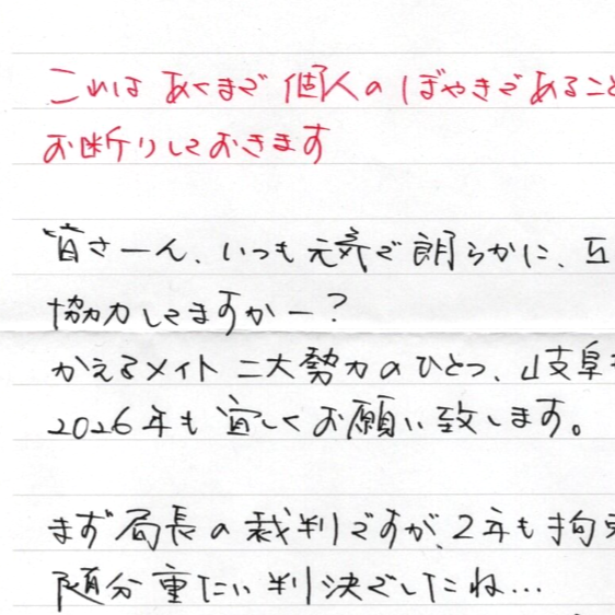 かえるメイト(受刑者会員)二大勢力のひとつ、岐阜刑から2026年も宜しくお願い致します。